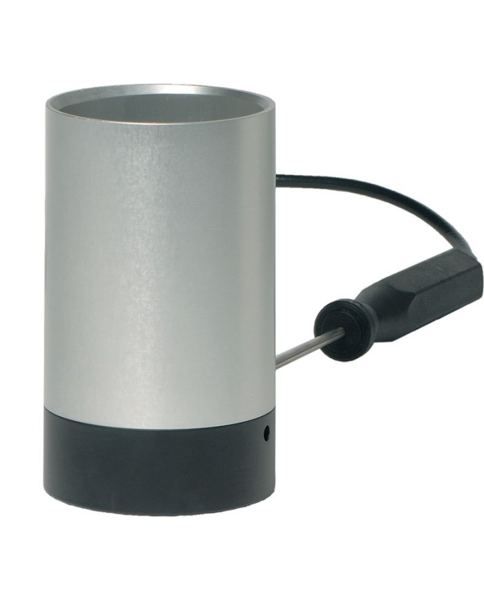 Komparatoren består af en aluminiumskop Ø60 x 100 mm med en massiv mat sort bund. Basen indeholder to Ø3,5 mm huller, et til en referencetermometersonde og det andet til en ekstra sonde, hvis det er nødvendigt.