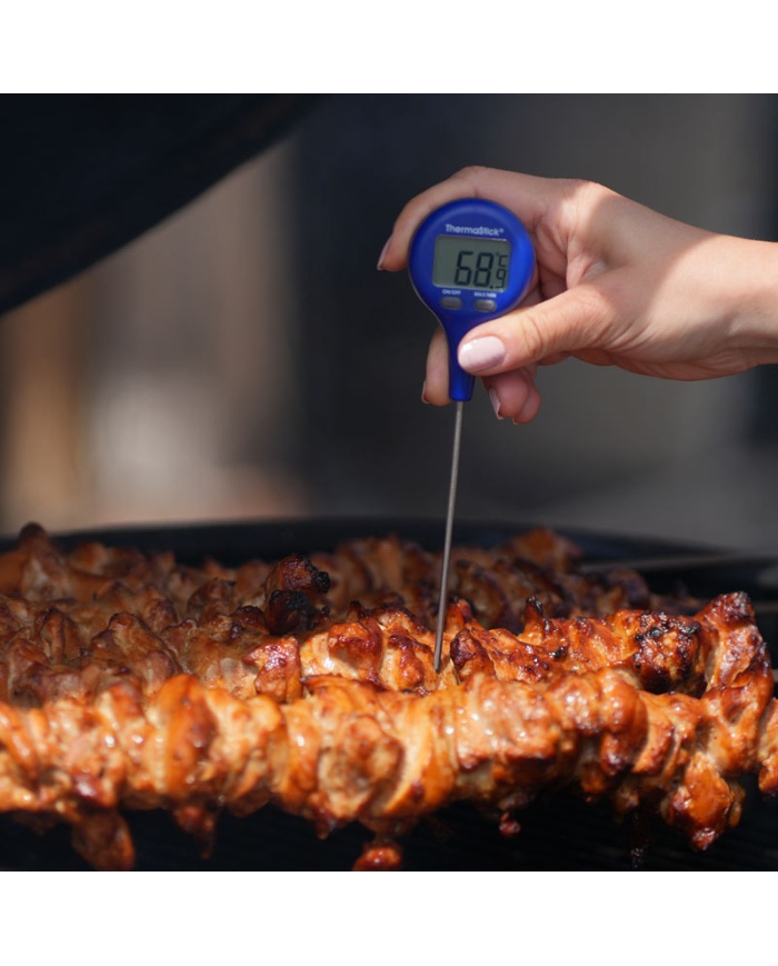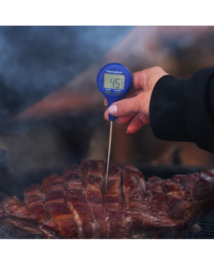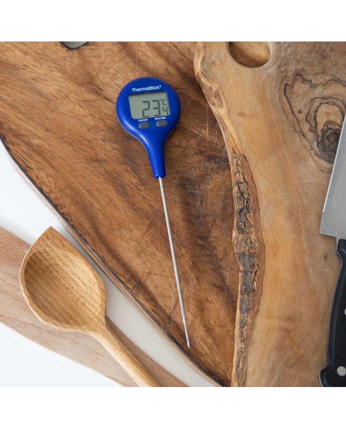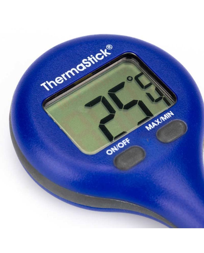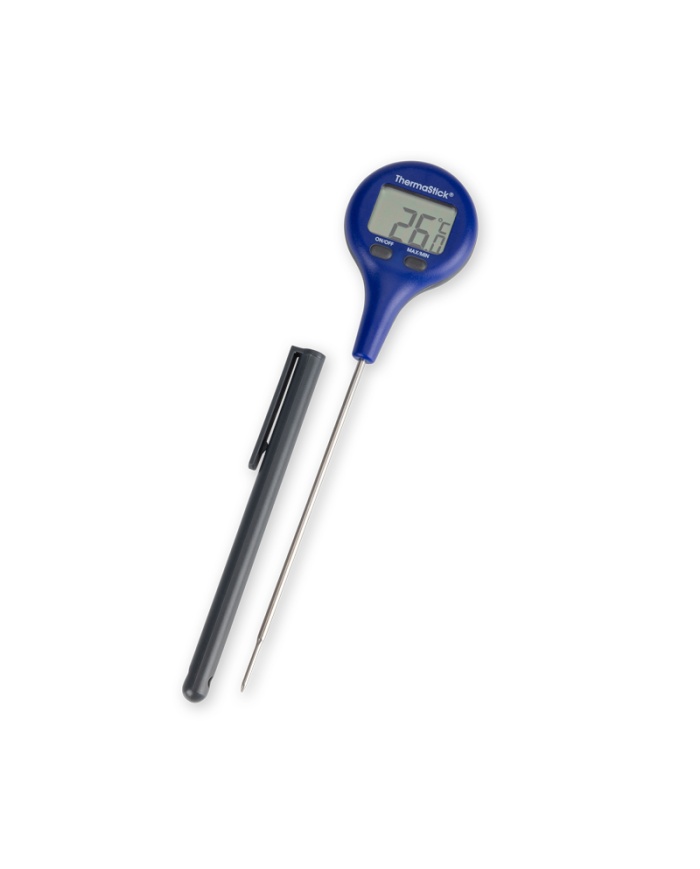ThermaStick-termometeret måler temperaturen i området -49,9 til 299,9 °C med en opløsning på 0,1 °C/°F og har to brugervenlige trykknapper, tænd/sluk og maks./min.