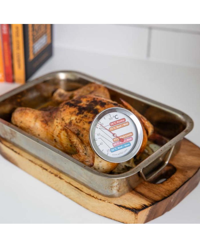Dette kødtermometer har en stor Ø60 mm urskive med en Ø5 x 102 mm spids sonde i rustfrit stål. Termometeret angiver temperaturen i området 20 til 100 °C i 2 °C-inddelinger og giver en økonomisk og pålidelig måde at sikre, at dit kød og dine steger er ordentligt og sikkert tilberedt.