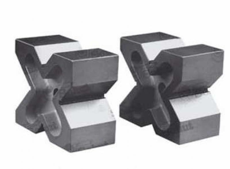 X-block i par, støbejern, dimensioner 120x100x60 mm, kapacitet ø8-90 mm, vægt ca. 6 kg per par, nøjagtighed klasse 0
