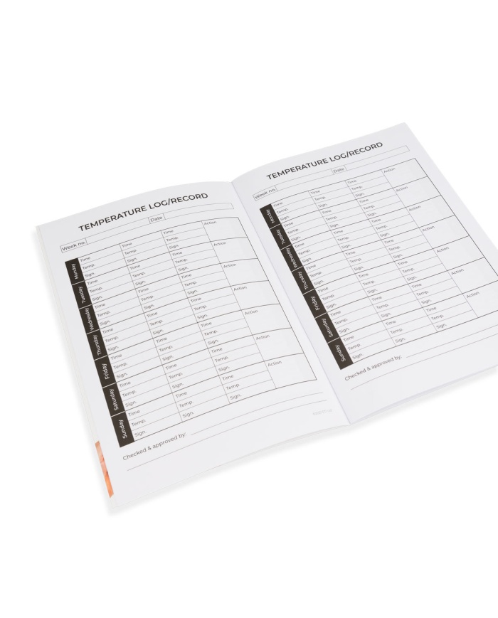 I kommercielle køkkener skal hvert køleskab eller køleskab have sin egen temperaturlog/dagbog eller mappe. ETI-logbøger indeholder seks måneders forsyning af brugervenlige diagramark med et rent låg.