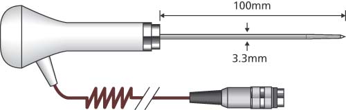 PT24L/C Food Penetration Probe harBioCote Antimikrobiel Beskyttelsei sondens håndtag for at minimere risikoen for krydskontaminering. Det er udstyret med en termoelement Type T sensor for en hurtigere responstid. PT24L/C er udstyret med en krøllet brun ledning.