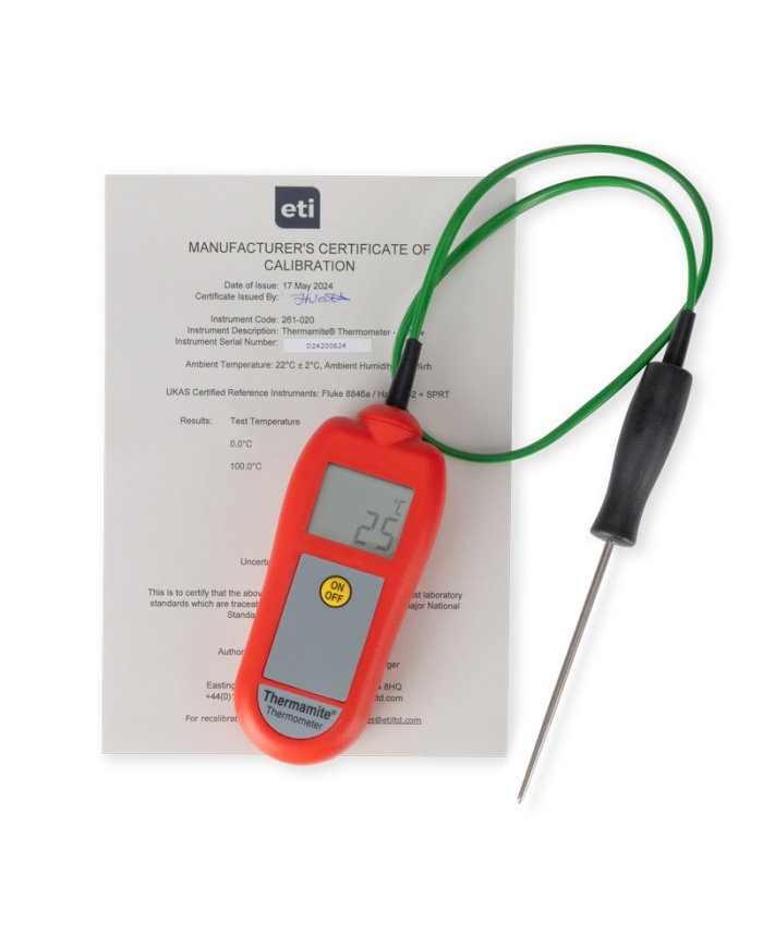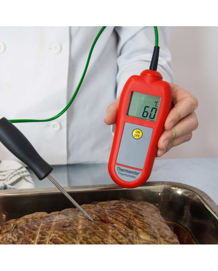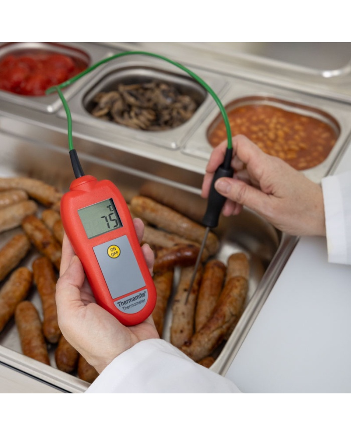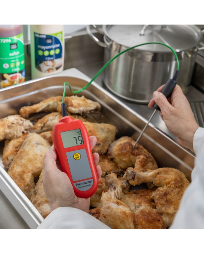 Thermamite Digital Food Thermometer er en enkel og overkommelig enhed til at tage daglige temperaturkontroller som en del af HACCP og andre sundheds- og sikkerhedsprocedurer. Leveres med et GRATIS sporbart kalibreringscertifikat, du kan være sikker på nøjagtigheden af dine aflæsninger.