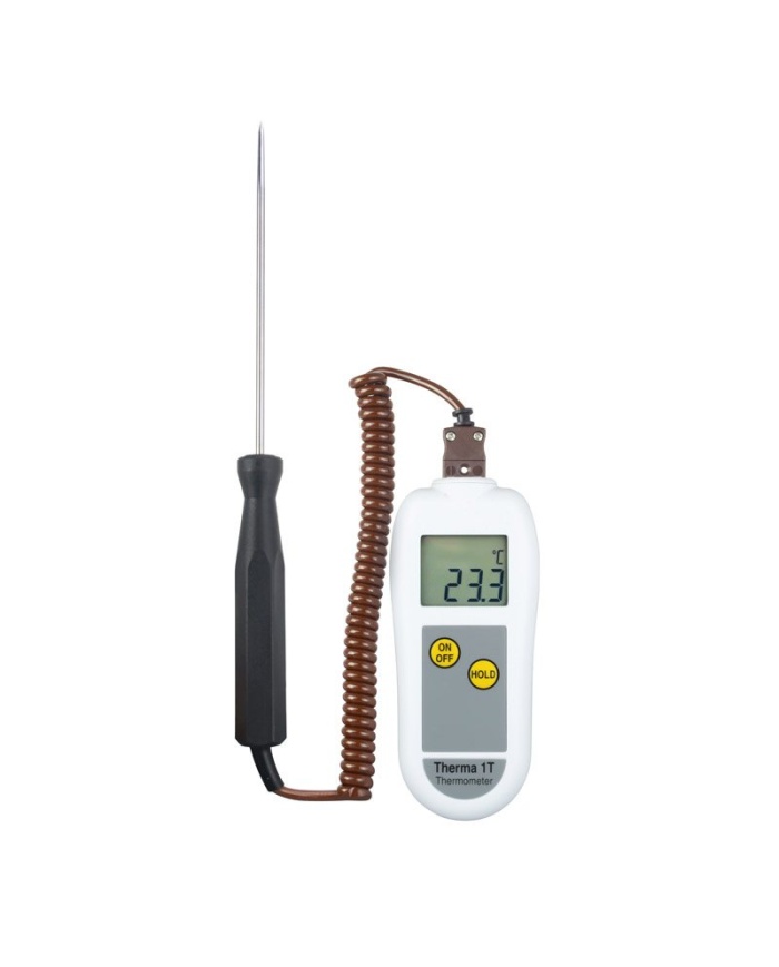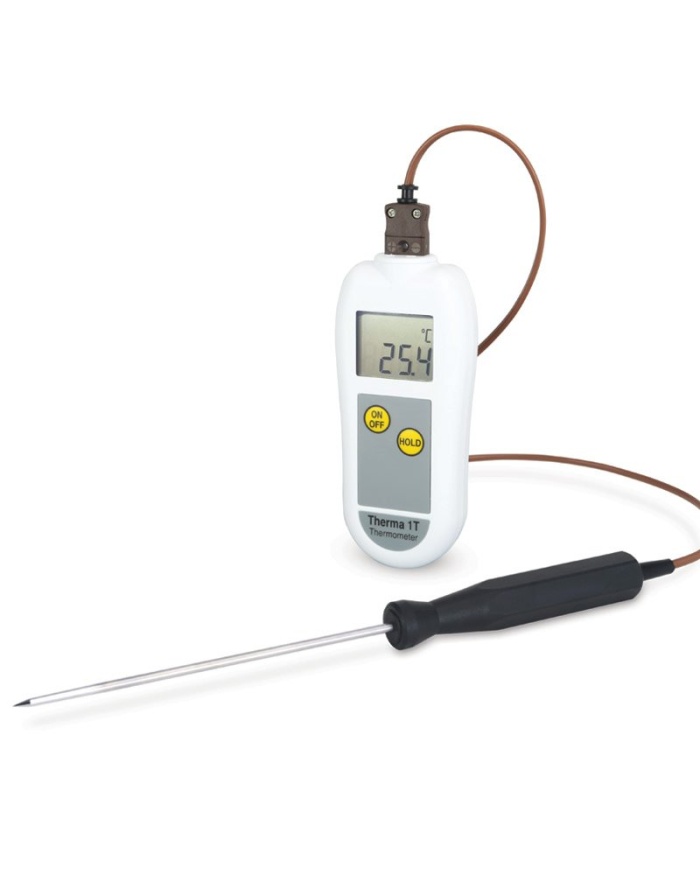Therma 1T termometeret bruger en type T termoelement sensor, som tilbyder både hurtig respons og et måleområde på -100 til 400 °C med en 0,1 °C opløsning. Hver enhed er anbragt i et robust ABS-etui, der indeholder Polygiene BioMaster produktbeskyttelse, hvilket reducerer bakterievækst.