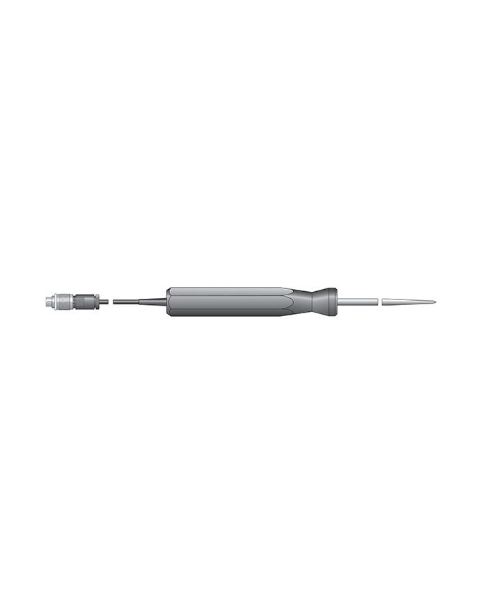 Denne modstandstemperaturdetektering i rustfrit stål eller RTD-penetrationssonde, med en høj nøjagtighed ‘klasse A’ PT100-sensor, er stærk og alsidig, ideel til en række applikationer, herunder væsker og halvfaste stoffer. Responstid mindre end seks sekunder. Sondetemperaturområde -100 til 200 °C.