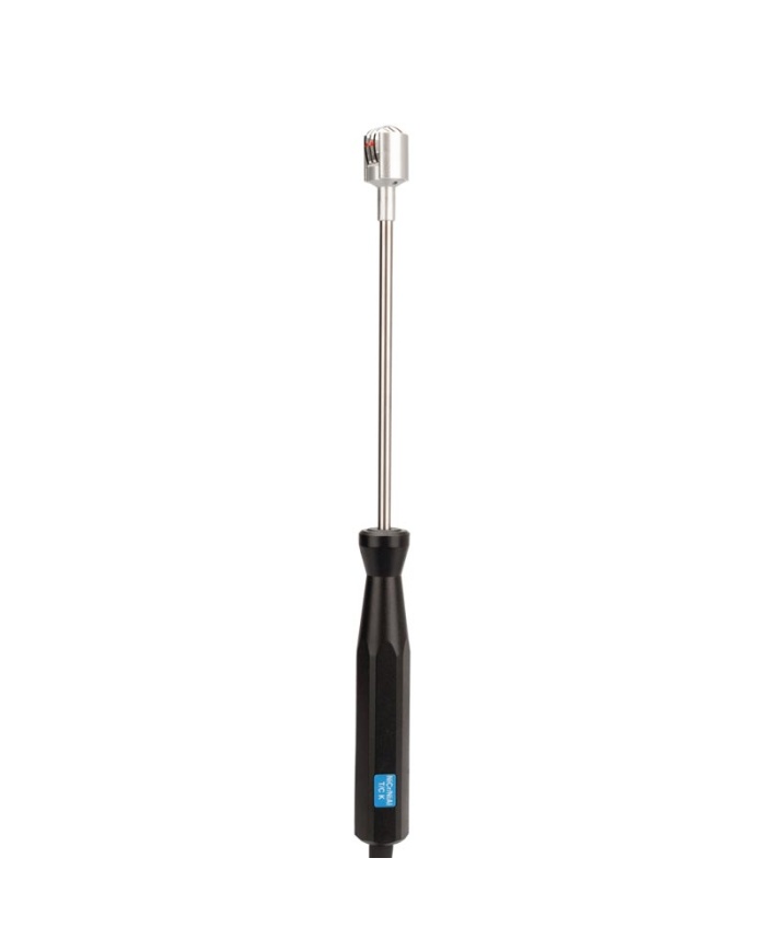 Denne termoelementoverfladesonde måler 130 mm x 15 mm og har et bredt temperaturområde fra -75 til 250 °C. Den har en nøjagtighed på ±1,5 °C (mellem -40 og 375 °C).